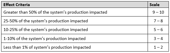 - Effect – amount of direct loss from an attack as measured by loss in production