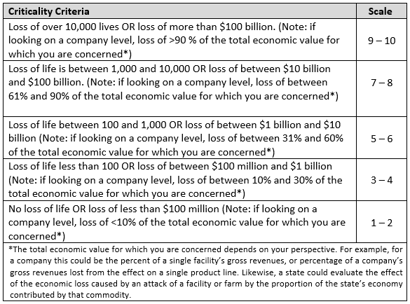 A target is critical when introduction of threat agents into food at this location would have significant health or economic impact.