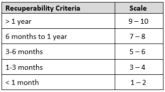 A target’s recuperability is measured in the time it will take for the specific facility to recover productivity.