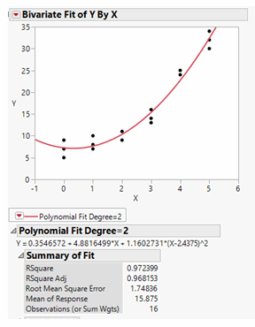 It appears we have an excellent fit and that the data can be modeled by a standard, quadratic function with a correlation coefficient of 97%.