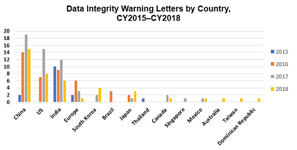 - Warning letters from the 2018 calendar year (CY2018) that cite data integrity deficiencies