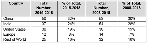 Table 3: Geographic Totals and Percentage, 2015–2018 and 2008–2018