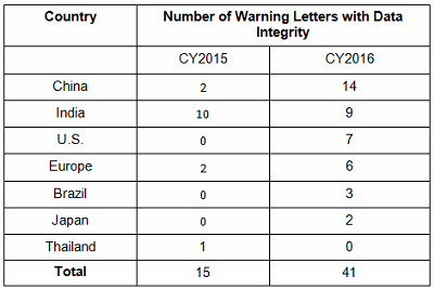 More than 15 years ago the FDA issued warning letters that identified failures in computer system validation, failure to review laboratory computer systems audit trails, failure to maintain electronic records and failure to investigate their disappearance. While the FDA led the way in early enforcement, global health authorities have now begun to catch up and cite similar deficiencies in their inspections. Approximately 80 percent of all warning letters in 2015 and 2016 include a data integrity component, and approximately 70 percent of the published Eudra reports of GMP non-compliance cite similar shortcomings.