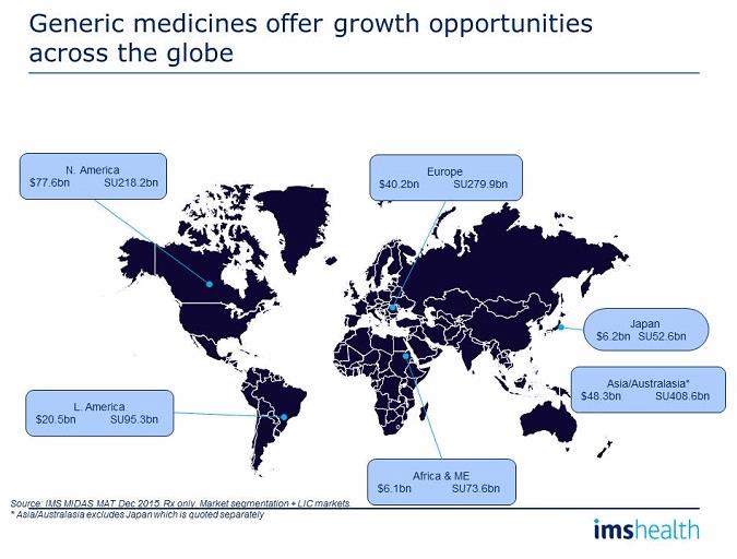 Generic medicines are forecast by IMS Health to grow at a CAGR of 6.9%, with the U.S. leading the way in the selected group of markets. Europe is still beset by economic issues, with price controls and increasing competition continuing to adversely affect the market. As mentioned, Japan is making good progress with its programme to increase generic usage, and Brazil is still an attractive market for generic medicines.