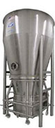 A conical expansion chamber which reduces the velocity of the air in the filter chamber by 50%, The reduction in velocity helps to keep the smaller or fine particles out of the upper filter region and below the spray nozzles when granulating, reducing processing time.