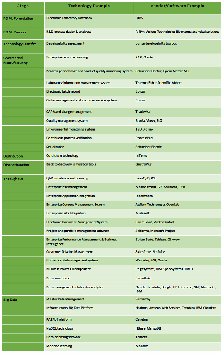 Below is a small sample of technology that could be part of QbD knowledge creation and management. (Disclaimer: This list is not exhaustive nor meant to be recommendations.)