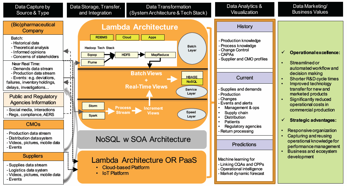 To further add to the complexity of the digital value chain, trends in patient-centric medicine expand the scope of consideration to individual patients, which will drastically change the mode of manufacturing and delivery, hence requiring data management.11 Upcoming serialization and end-to-end track-and-trace implementation deadlines will fill in the data gap of a product from the manufacturer to a specific patient. Technologies can be combined in different ways to provide unique solutions to Big Data implementations in this scenario. Regardless, sound data governance practices such as master data management (MDM) to maintain a “single source of truth” and utilizing meta data to effectively index data contents are important to the maintenance of the program.
