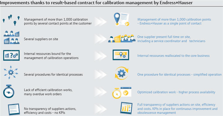 Our solution: Endress+Hauser took the responsability to manage and execute the whole calibration process of most of the devices operating on site. In the scope of a result-based contract we set up and are now operating: