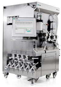 ÄKTA ready™ 450 is a single-use liquid chromatography system designed for small-scale manufacturing in GMP-regulated environments. The single-use flow path minimizes the need for cleaning and cleaning validation, allowing for quick changeover between productions and reducing the risk of carryover. |