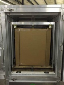 The Cold Box in-house performance qualification test had a set temperature at 41°F or 5°C ±1°C, while temperature loggers were programmed to record every 5 minutes for 60 hours. These temperature loggers were then placed strategically on the newly manufactured frame, which was then mounted onto a 40”x48” wooden pallet.