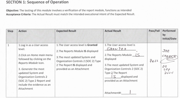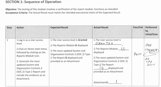 NOTE: Each page of the accompanying attachment during the execution of the protocol/script must be identified using an X of Y format in which the X represents the current page while the Y represents the total number of pages while identifying for additional traceability (meta data) the protocol number, attachment number, test section/case, test-step, and initial/date of the validation engineer.