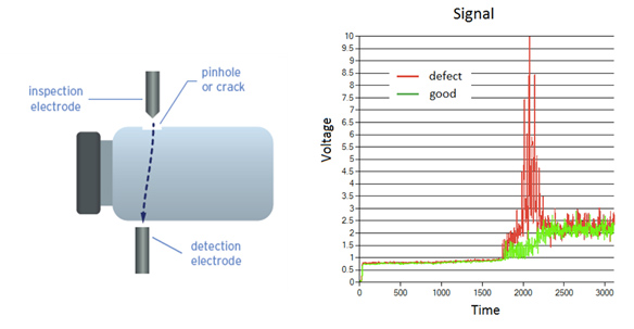 On the other hand, high voltage can also be used to quantitatively detect leaks without destroying the sample. When it is applied to a non-conductive package material that contains a semi conductive product inside, a spike in the voltage reading would indicate a defect in the packaging.6