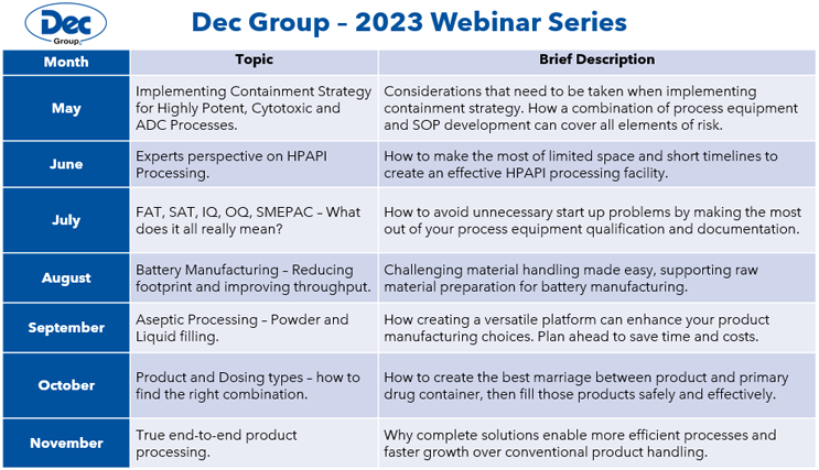 Dec Group Announces 2023 Webinar Series On Pharmaceutical Containment Strategies