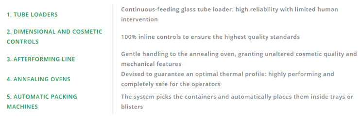 Stevanato Group glass converting lines come as a turnkey package, including the forming unit and other process equipment, or as stand-alone modules. Completely automatic washing equipment to remove particles from the glass and reduce cosmetic defects is also available.