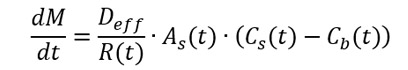 Solubilization in these structures can also impact dissolution rate. In addition to impacting Cs and Cb in the dissolution equation, it is also important to consider the impact on the apparent diffusion coefficient (represented by Deff in Equation 1). The apparent diffusion coefficient describes the rate of diffusion of a drug from the particle surface, with a higher Deff resulting in a faster dissolution rate. When both free unbound drug and drug bound to micelles or vesicles are present, the Deff value can be calculated as a weighted average of the unbound drug diffusion coefficient times the fraction of unbound drug plus the micelle or vesicle diffusion coefficient times the fraction of bound drug (Du × fu + Dm × fm).