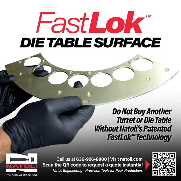 Revolutionize your tablet press with the FastLok™ Die Table Surface from Natoli Engineering. Our exclusive and patented snap-in technology makes changeovers fast, easy, tool-less — getting your press back to full production in minutes.
