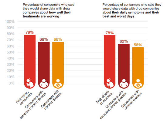 Interestingly, some sub-sets of patients are even more likely to share data than others, according to HRI’s survey. Patients who are frail or elderly are generally more willing to share, for example.15