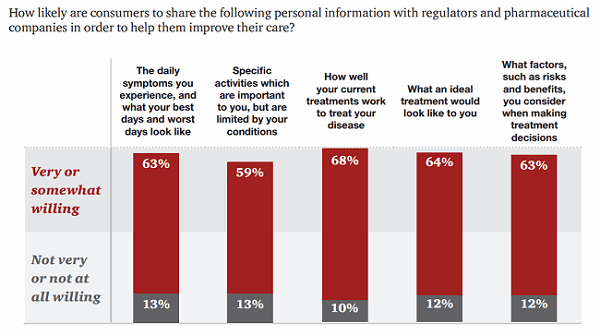 Figure 3: Consumers are willing to share certain health data with pharmaceutical companies and regulators.