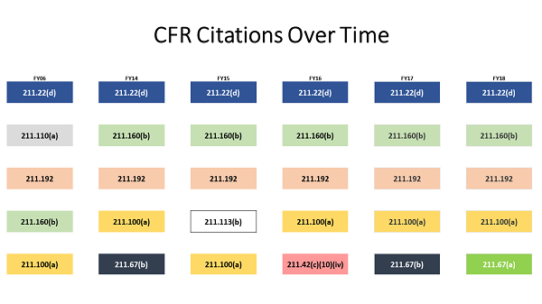 Moller shared a graphic showing the top observations for the last five fiscal years and, for comparison, FY06. The citations are color-coded, meaning the same color box is the same observation.