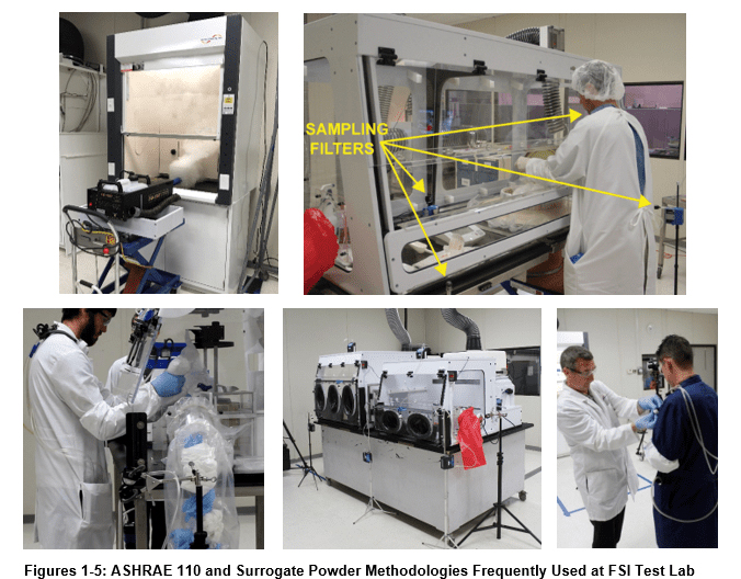 Molecular tracers vs. living tracers: ASHRAE 110, EN14175, and the Surrogate Powder tests all use molecular tracers; NSF 49 uses living tracers.