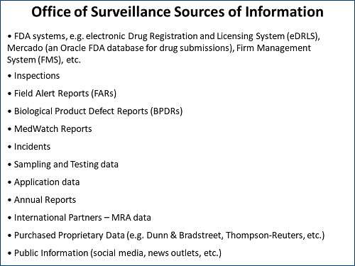 In efforts to expand its facility and product surveillance and inspection model, the FDA is looking at data that it already has in-house and expanding its cadre of data and risk scientists to evaluate how the data might be used.