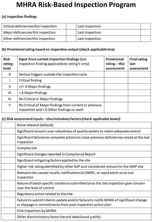 Figure 3: The U.K. Medicines and Healthcare Regulatory products Agency’s risk-based inspection program