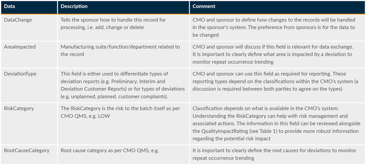 When it comes to data accuracy and integrity, the digital exchange of a deviation notification must accurately reflect the deviation data stored within the CMO’s quality management system (QMS). It must be validated or qualified at a level that matches the intended use of the information shared. The quality agreement must outline the agreed transfer of data ownership and the ownership of validation responsibilities between the sender and receiver of the data.