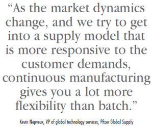 Nepveux sat down with me to share some of his insights about continuous manufacturing (CM) and how Pfizer is deploying continuous and batch processes as a hybrid approach toward improving manufacturing efficiencies.