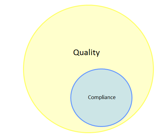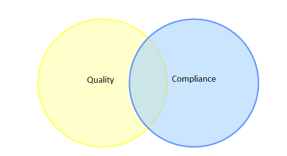 Figure 1: Typical Venn diagram sketched by industry practitioners to illustrate the relationship between quality and compliance