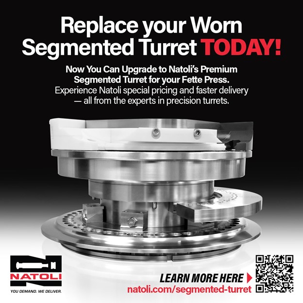 Now you can upgrade to Natoli’s premium segmented turret for your Fette Press! Natoli Engineering has 20 years’ experience in manufacturing segments, backed by ongoing investments in advanced R&D, CNC process automation, and precision finishing which meets often surpasses the OEM - Our quality is in the detail. The Fette patent is now expired, and Natoli is ready to deliver unmatched quality and performance.