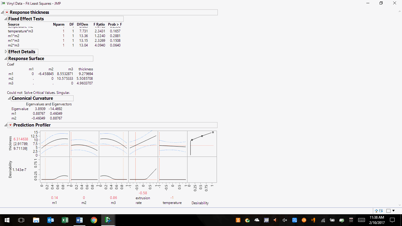Figure 1: Initial results of the design of experiments (DoE) for Vinyl Data.jmp