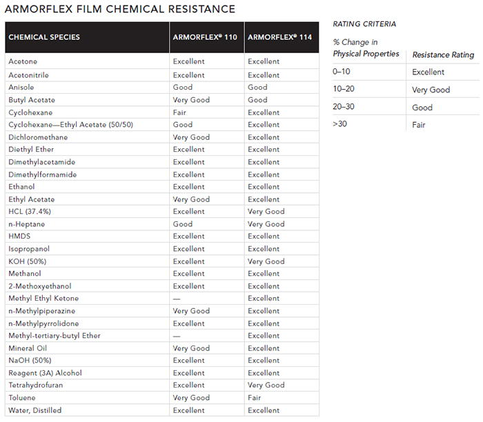ARMORFLEX FILMS PROVIDE A FULL RANGE OF PERFORMANCE AND CHEMICAL RESISTANCE