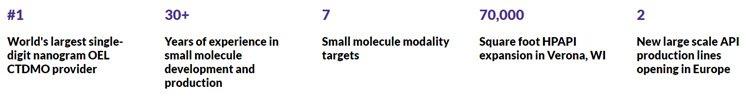 - Industrial hygiene certified facilities with SafeBridge® Industry Leadership in HPAPI handling certification
