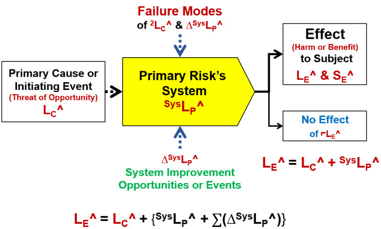 A harm risk prevents a harm event from occurring by having a system with a very low probability SysLP^ of propagating a threat event into a harm event. On the other hand, a benefit risk should have a system designed to have a very high probability of propagating an opportunity event to produce or achieve a benefit event. Using the mathematics of probabilities, the overall SysLP of the risk’s system for both harm and benefit risks is the mathematical product of all the XLPs of the system sequence.
