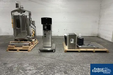 Sartorius Stedim Biotech BIOSTAT STR 500 500L Single-Use Bioreactor System includes: BIOSTAT2 Controller, (2) Huber MiniChiller 600, FrigoMix 2000 Recirculating Chiller, CAIS1-VC01 Combics 1 Floor Scale. S/N BUD170019, 1700136, 60830-IX-02-19, EQ1123, EQ1448.